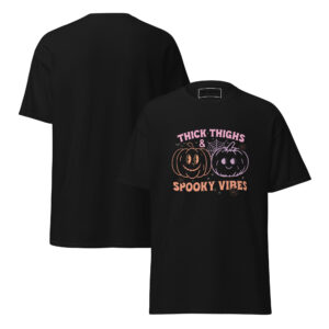 The 100% cotton Thick Thighs And Spooky Vibes Halloween Unisex Classic Tee will help you land a more structured look. It sits nicely, maintains sharp lines around the edges, and goes perfectly with layered streetwear outfits. Plus, it’s extra trendy now!
